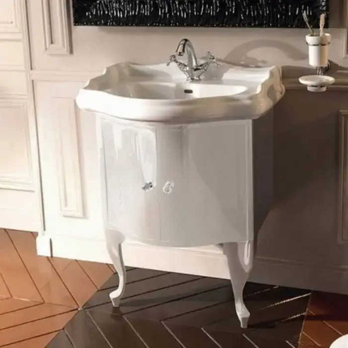 KERASAN Retro 7361К6, база 69см, под раковину 1046, цвет: белый глянцевый, ножки: белые, ручки: кристалл/кольцо-золото