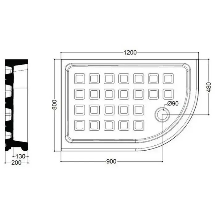 KERASAN Retro Поддон керамический полукруглый ассиметр. 80х120см DX, диаметр слива 90, цвет белый
