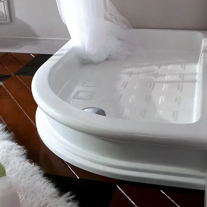 Kerasan Retro Поддон керамический полукруглый ассиметр. 80х120см DX, диаметр слива 9см, цвет: белый