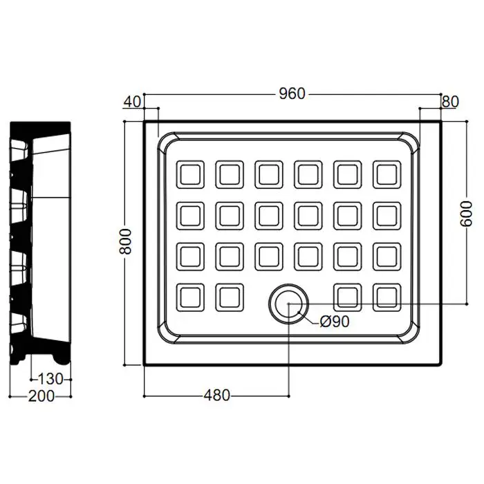Kerasan Retro поддон прямоуг. 80х96см SX, диаметр слива 9см, цвет: белый