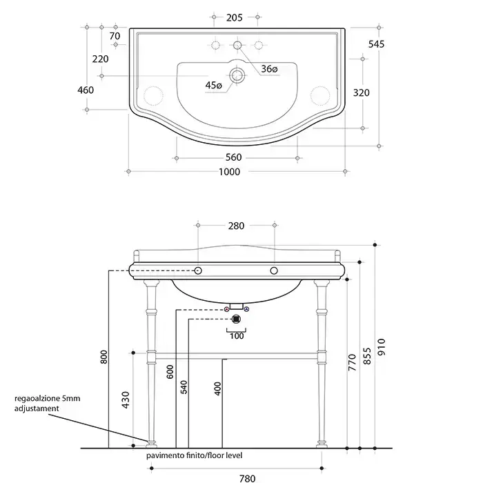 Kerasan Retro Раковина подвесная 100x54.5см, 3 отв., цвет: белый