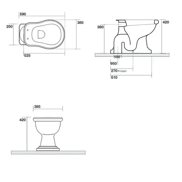 Kerasan Retro Унитаз 61х39см., приставной, слив универсальный, цвет: белый