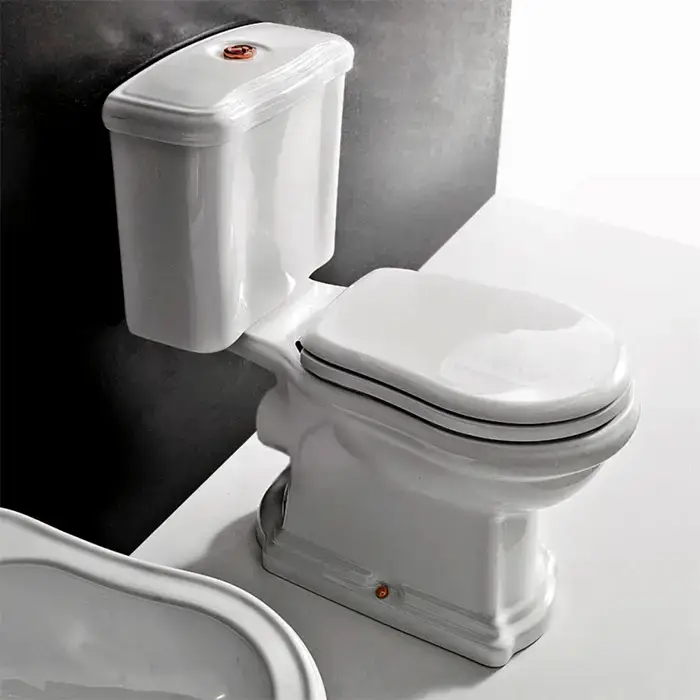 Kerasan Retro Унитаз 72х38.5см., приставной, с низким бачком, слив в стену, цвет: белый/бронза