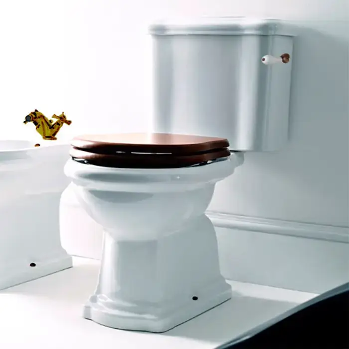 Kerasan Retro Унитаз 72х38.5см., приставной, с низким бачком, слив в стену, цвет: белый/бронза