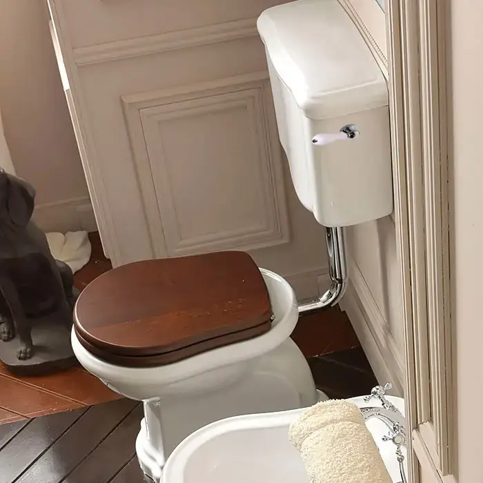 Kerasan Retro Унитаз 72х38.5см., приставной, с низким бачком, слив в стену, цвет: белый/бронза
