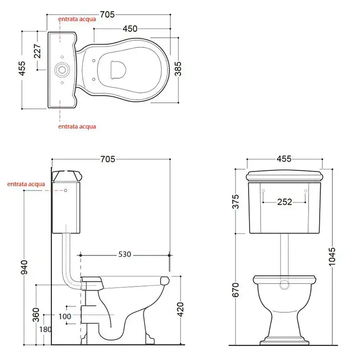 Kerasan Retro Унитаз 72х38.5см., приставной, с низким бачком, слив в стену, цвет: белый/бронза