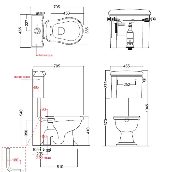 KERASAN Retro Бачок подвесной (для низкой трубы) для унитаза 1011/1010, (без трубы и механизма слива), цвет белый