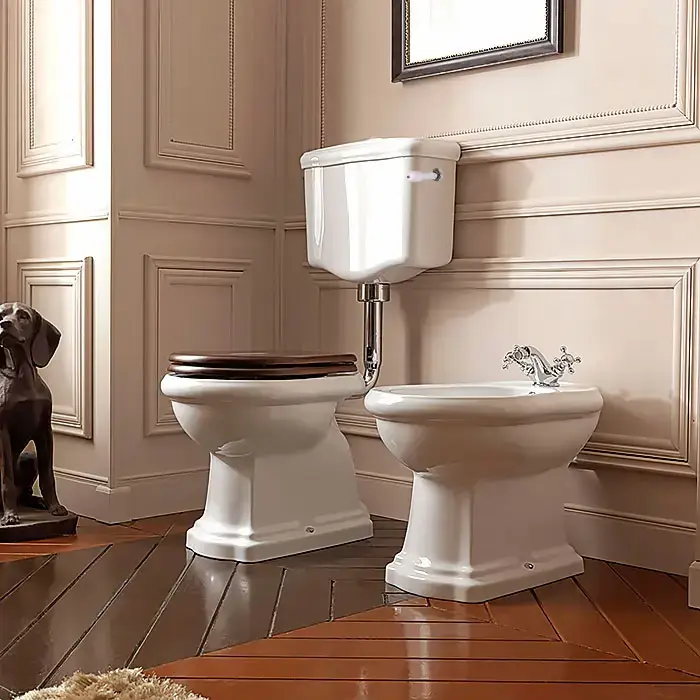 Kerasan Retro Унитаз 72х38.5см., с высоким бачком, слив в пол, цвет: белый/бронза