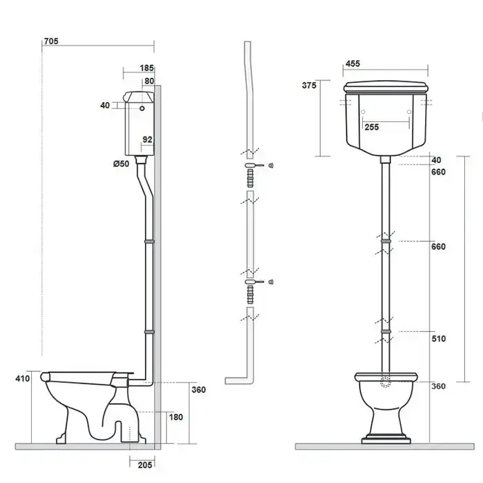 KERASAN Труба для высокого бачка, состоит из 3-х частей, цвет бронза