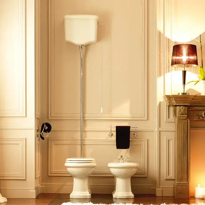 Kerasan Механизм слива NEW "CATIS" для высокого бачка с держателем, ручка белая (слева или справа), без трубы, цвет хром