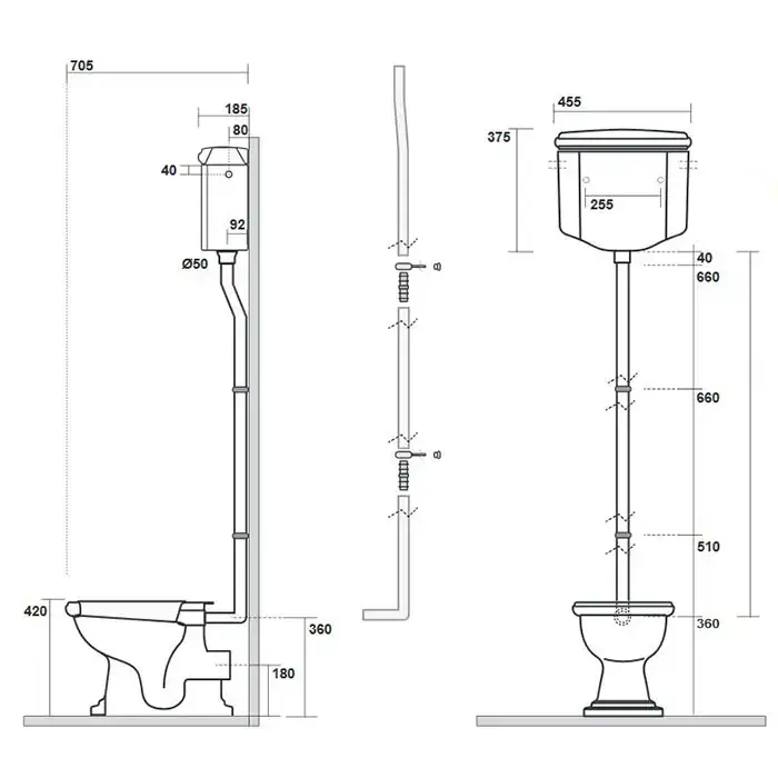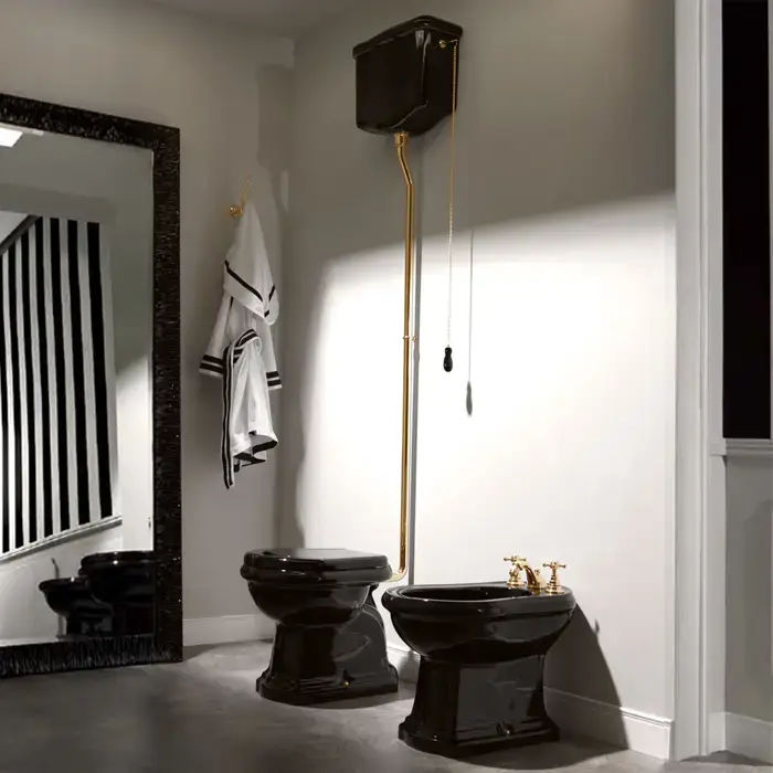 Kerasan Retro Унитаз 72х38.5см., с высоким бачком, слив в стену, цвет: черный глянцевый/золото