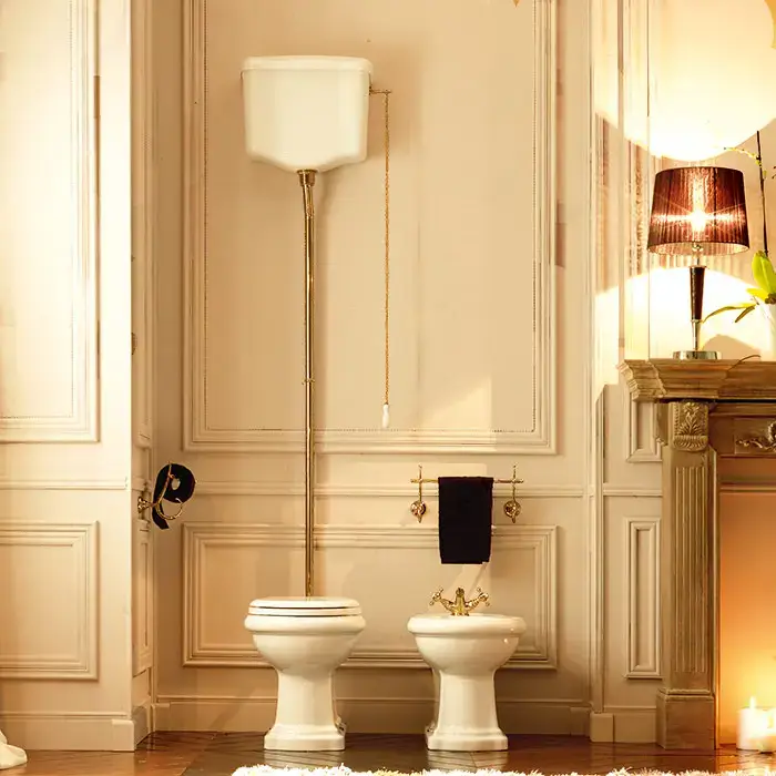 KERASAN Труба для высокого бачка, состоит из 3-х частей, цвет золото