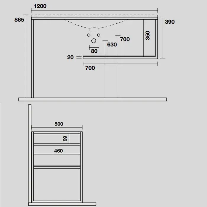 TW Shape комплект подвесной мебели 120х50см, с раковиной, с 1 выдвиж. ящиком с механизмом push-to-open, цвет: серый матовый RAL7016