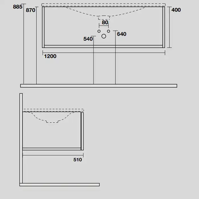 KERASAN SHAPE Раковина керамическая 1220х520 мм., встраиваемая, с 1 отверстием для смесителя, цвет белый глянцевый