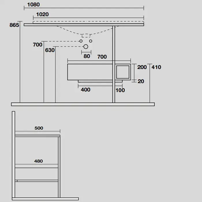 KERASAN SHAPE THELMA Структура напольная для раковины 1020 мм., нержавеющая сталь, ящик черный матовый, фронт дуб, цвет черный матовый