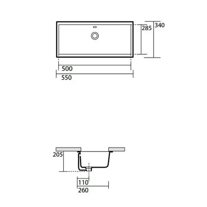 KERASAN SLIM Раковина встраиваемая под столешницу 500мм, крепеж в комплекте, слив под стандартный донный клапан, цвет белый