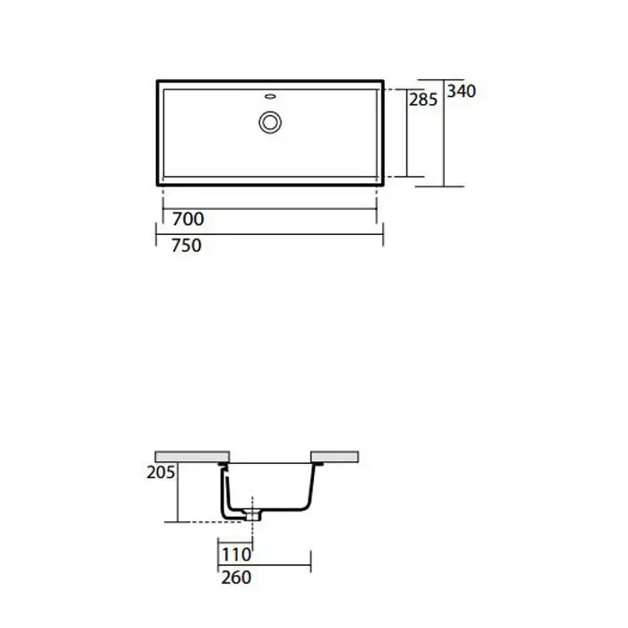 KERASAN SLIM Раковина встраиваемая под столешницу 750x340мм в комплекте с крепежом, цвет белый (для встраивания под столешницу с нахлестом)