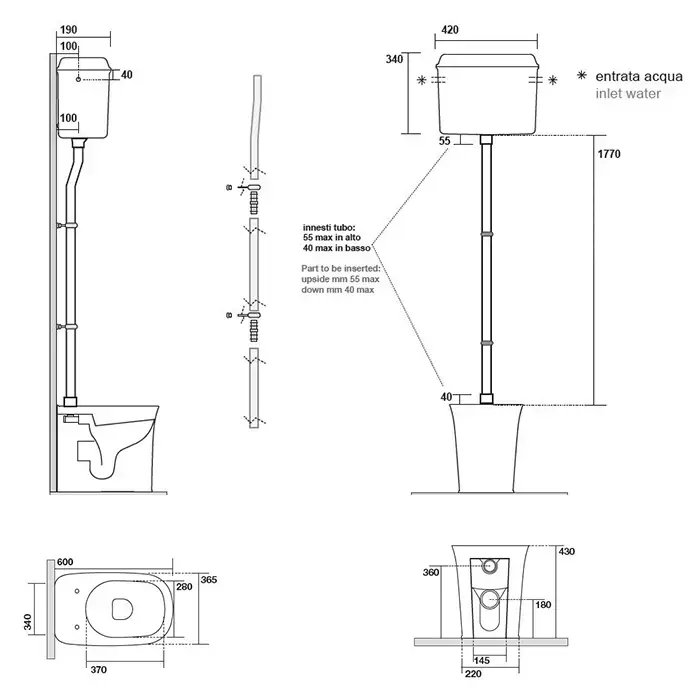 Kerasan The New Yorker Труба для "высокого" бачка 5680, состоит из 3-х частей, цвет: хром