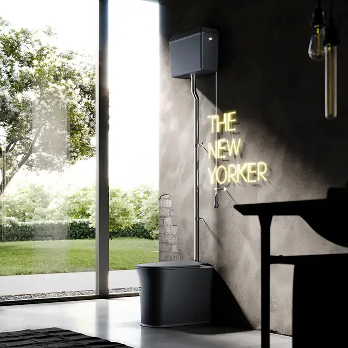 Kerasan The New Yorker Бачок подвесной (для высокой трубы) для унитаза 5618, (без трубы и механизма слива) подвод слева/справа , цвет: черный матовый