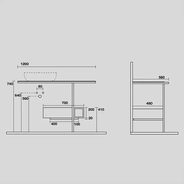 KERASAN THELMA Структура металлическая напольная 120х74 см, нерж сталь, с полкой,ящиком, с отв под раковину,полотенцедержателем, цвет черный матовый