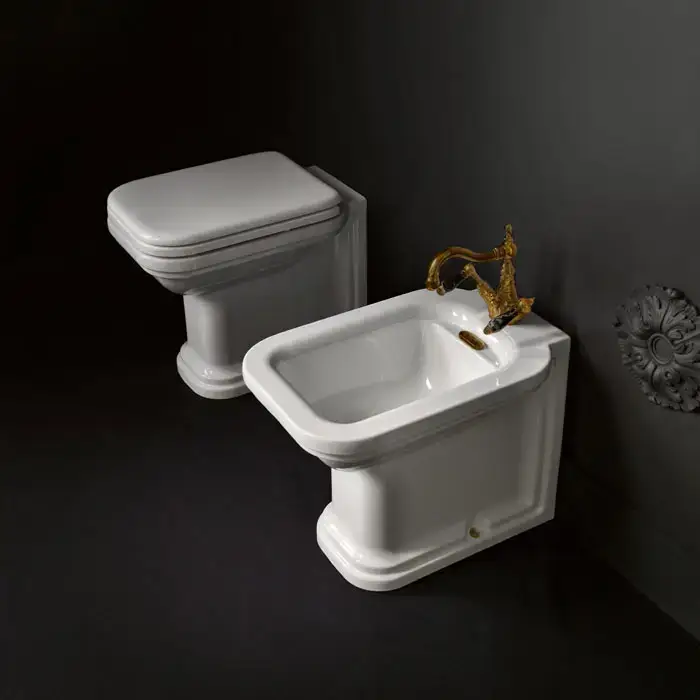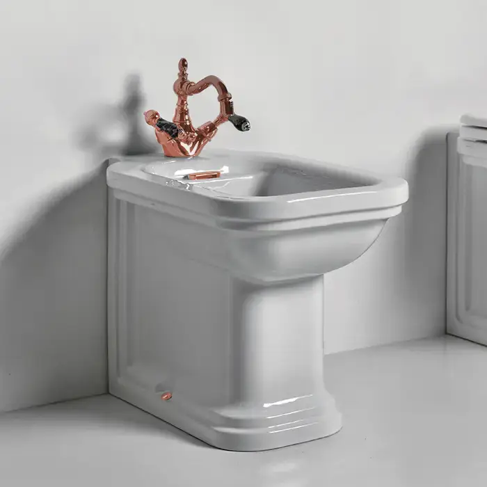 Kerasan Waldorf Биде напольное пристенное удлиненное "Prolongato" 65х37см с 1 отв. под смеситель, цвет: белый/бронза