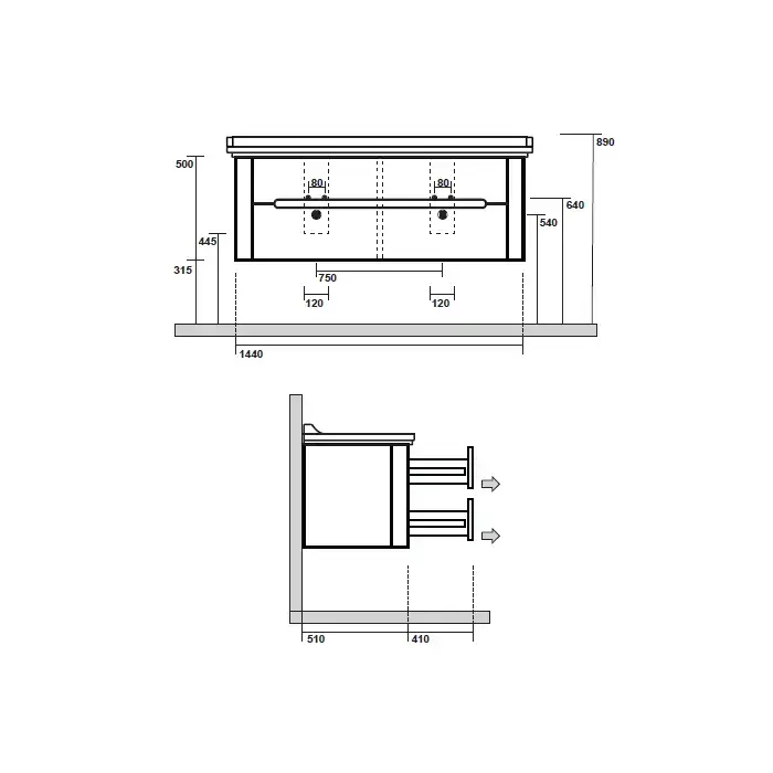 Kerasan Waldorf Комплект подвесной мебели 80см, с 2-мя ящиками Цвет: черный матовый