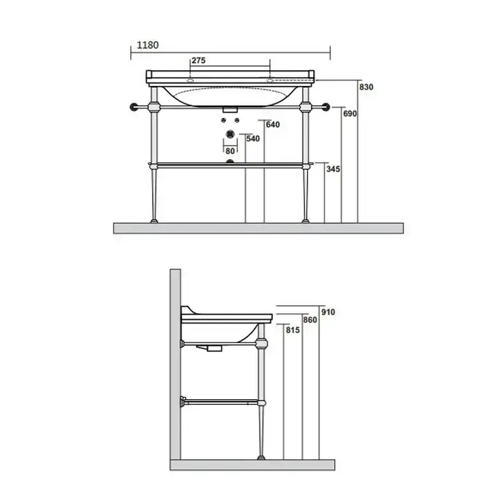Kerasan Waldorf Металлическая структура для раковины 108-118см, со стеклянной полочкой, цвет бронза (из 2-х коробок: арт. 919693+920293 и 919901)
