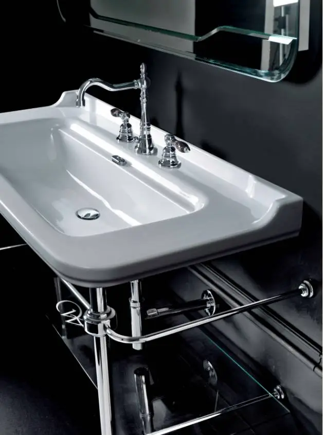 Kerasan Waldorf Металлическая структура 120х42см, с раковиной на 3 отв., со стеклянной полочкой, напольная, цвет: хром с раковиной
