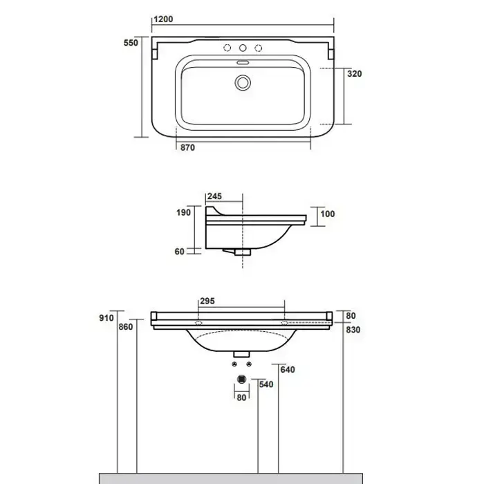 Kerasan Waldorf Раковина керамическая 120х55см, c 1 отверстием под смеситель, цвет: черный, заглушка хром
