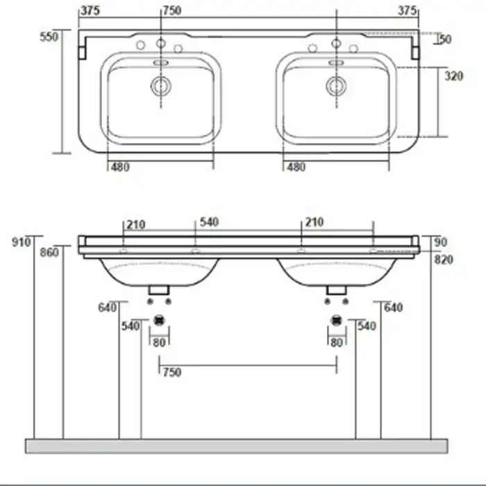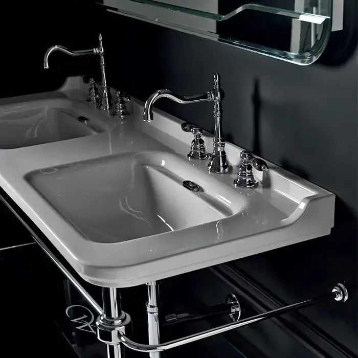 Kerasan Waldorf Раковина 150х55 см, 3 отв., двойная, керамическая, цвет: белый/хром