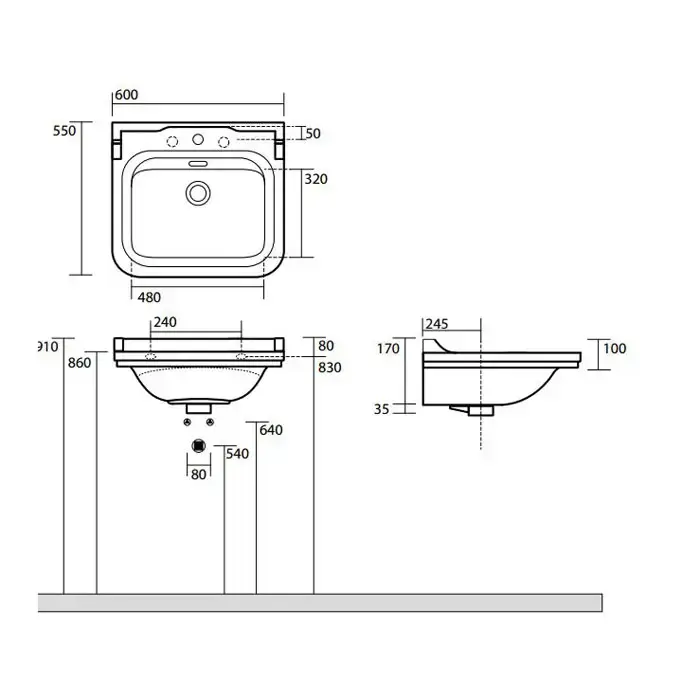 Kerasan Waldorf Раковина 80х55 см, 3 отв., с пьедесталом, цвет: белый/хром