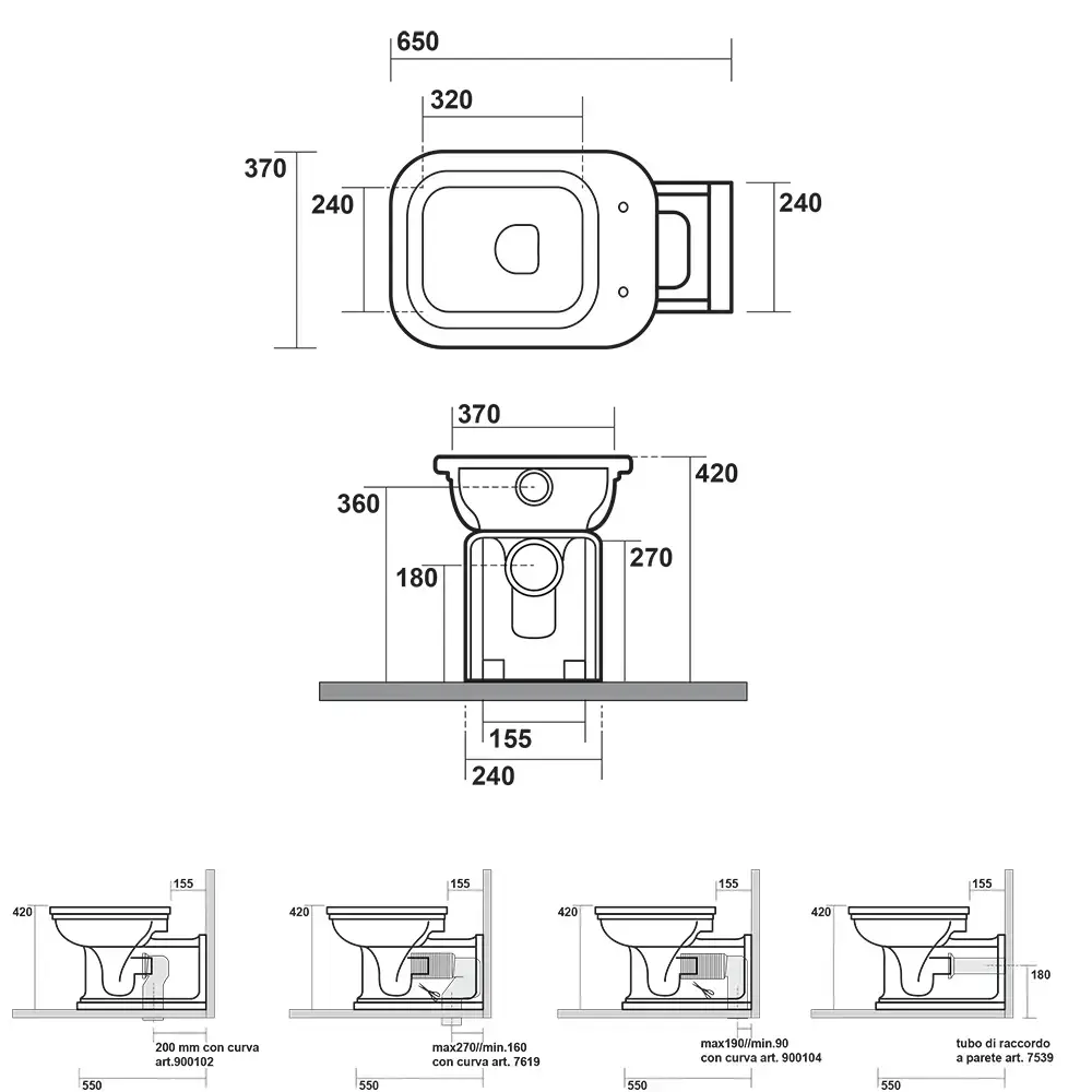 Kerasan Waldorf Унитаз напольный пристенный удлинен "Prolungato" 65х37см, цвет черный матовый (можно комбинировать с высок\средним бачком)