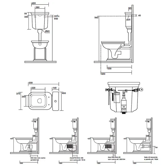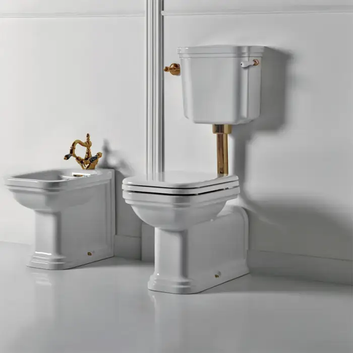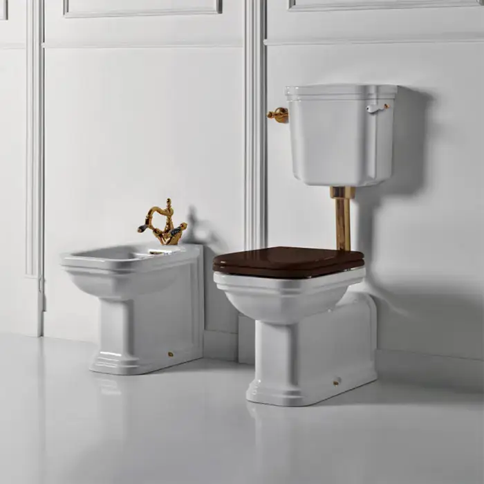 Kerasan Waldorf Унитаз 65х37см., приставной, c низким бачком, ручкой смыва справа, цвет: белый/бронза