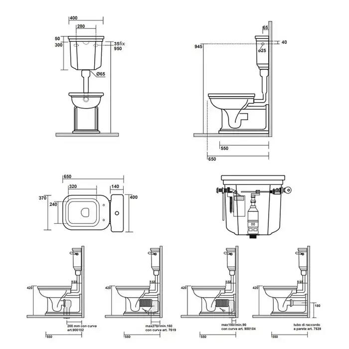 Kerasan Waldorf Унитаз 65х37см., приставной, c низким бачком, цвет: белый/бронза