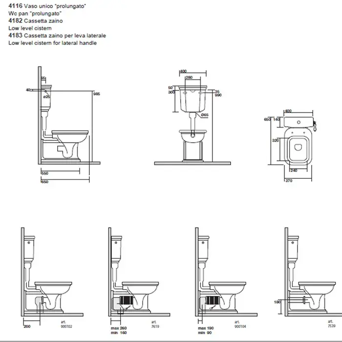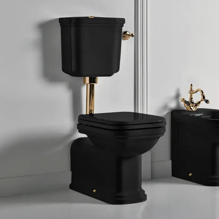Kerasan Waldorf Унитаз напольный удлиненный c низким бачком, трубой, цвет: черный/золото