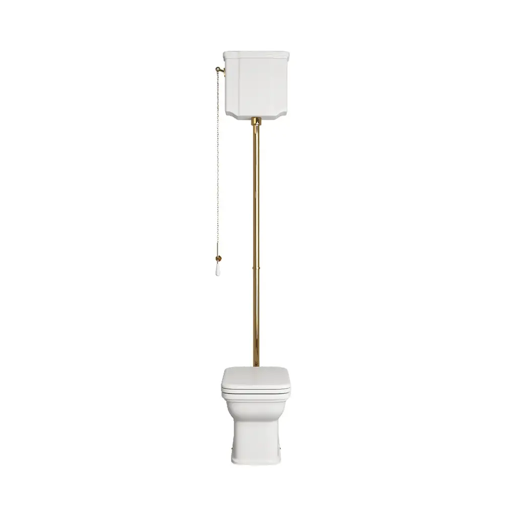 Kerasan Waldorf Унитаз пристенный удлиненный, с высоким бачком- уст-ка на расстоянии 2см от стены и трубой, фурнитура золото