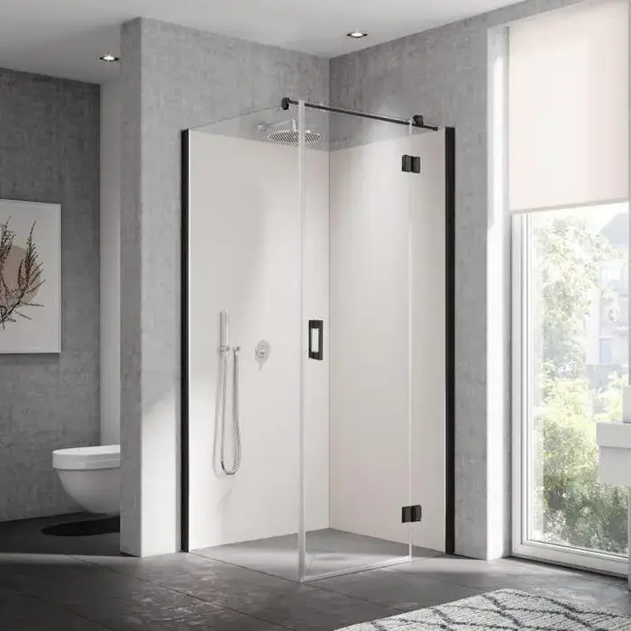 KERMI Liga Душевой угол SNR+TWP на поддон 90x90х200см., цвет: черный матовый/прозрачное стекло с Kermiclean