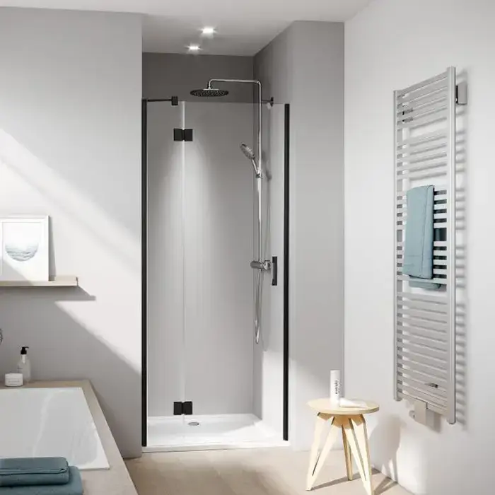 KERMI Liga Душевой угол SNR+TWP на поддон 90x90х200см., цвет: черный матовый/прозрачное стекло с Kermiclean