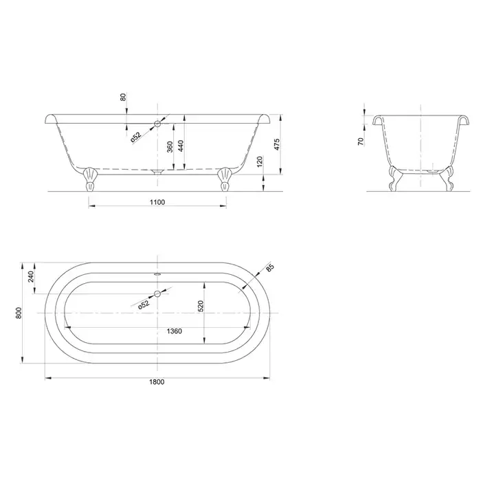 Knief Edwardian Ванна отдельностоящая 1800х800хh600мм, с 4-мя хромированными ножками "лапа" (продается со сливом 0100-091-02)