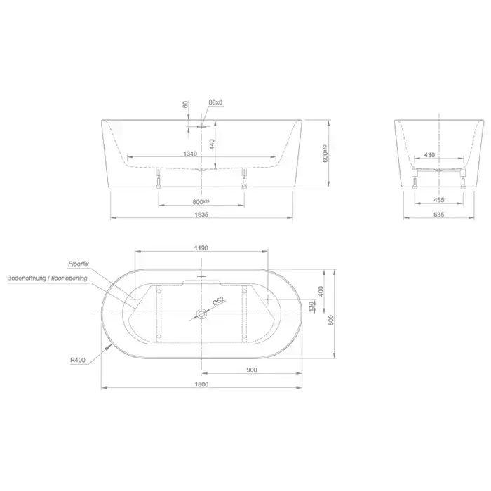 Knief Fresh Ванна отдельностоящая 180х80х60см., без слив-перелива, цвет: белый