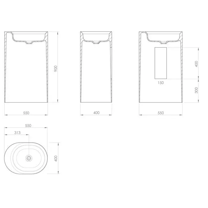 KNIEF Glow Раковина 55х40х90 см, без отв., без перелива, вывод в стену, цвет: белый матовый