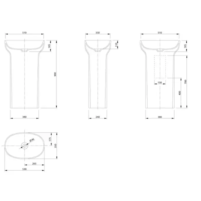 KNIEF Prime Раковина отдельностоящая 53х35х90 cm, с выходом в стену , цвет белый матовый (СПЕЦЦЕНА!)