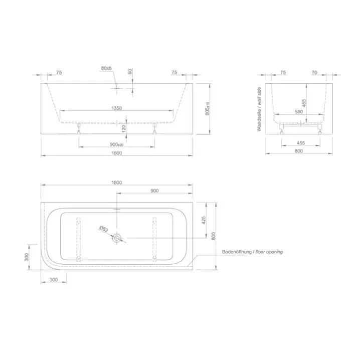 KNIEF Pure Corner L Ванна акриловая в правый угол 1800х800х600 мм щелевой перелив, цвет белый глянцевый (продавать с переливом 0100-091-06S)