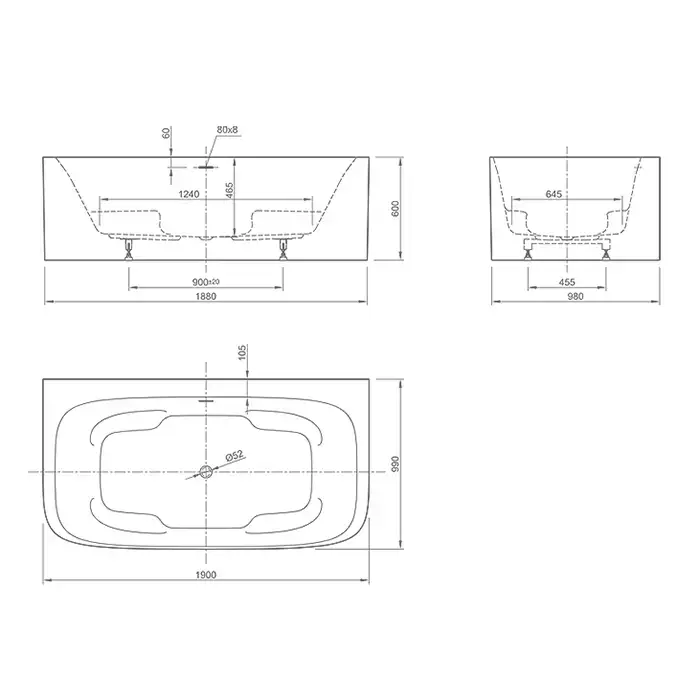 KNIEF Summer Ванна акриловая отдельностоящая 1900х1000х600 мм, со щелевым переливом, цвет белый глянцевый (продаем вместе с 0100-091-06S)