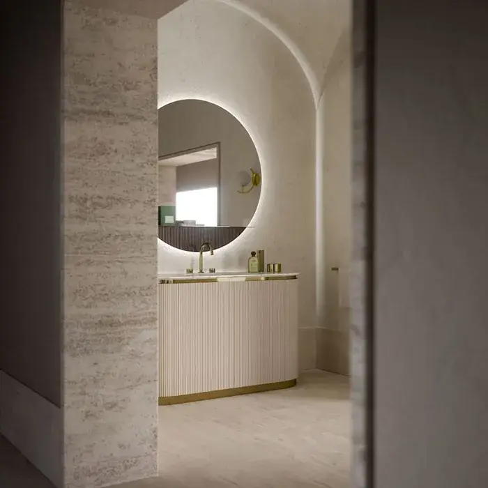 Oasis Naos Композиция №6 Комплект мебели 80х56xh45см, подвесной, мраморный топ, фурнитура латунь, зеркало, цвет: Corda elegance
