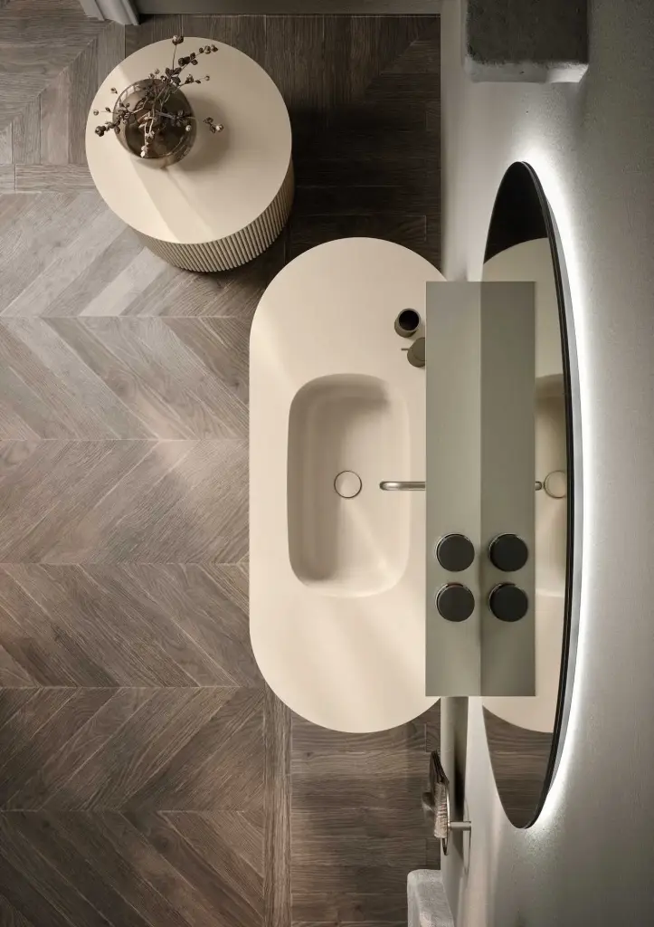 Oasis Naos Композиция №6 Комплект мебели 80х56xh45см, подвесной, мраморный топ, фурнитура латунь, зеркало, цвет: Corda elegance
