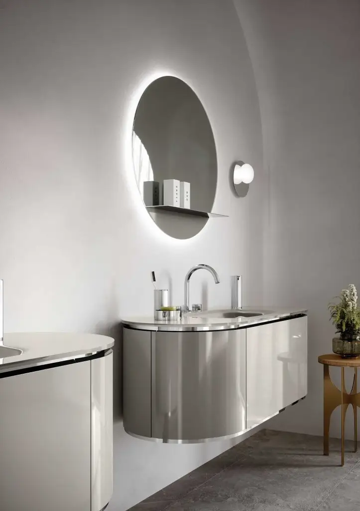 Oasis Naos Композиция №2 Комплект мебели 146х56xh85см, напольный, мраморный топ calacatta oro, цвет: лак глянцевый/золото глянцевое