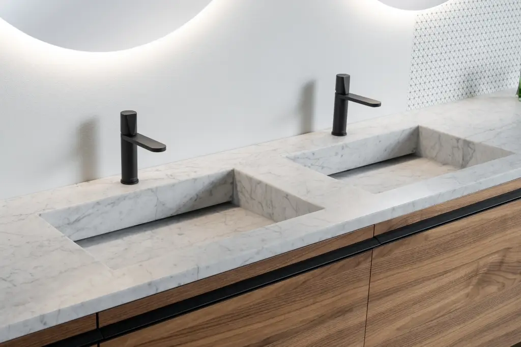 Топ с 2 интегрированными раковинами без отв. 306*54*3h Marmo Carrara