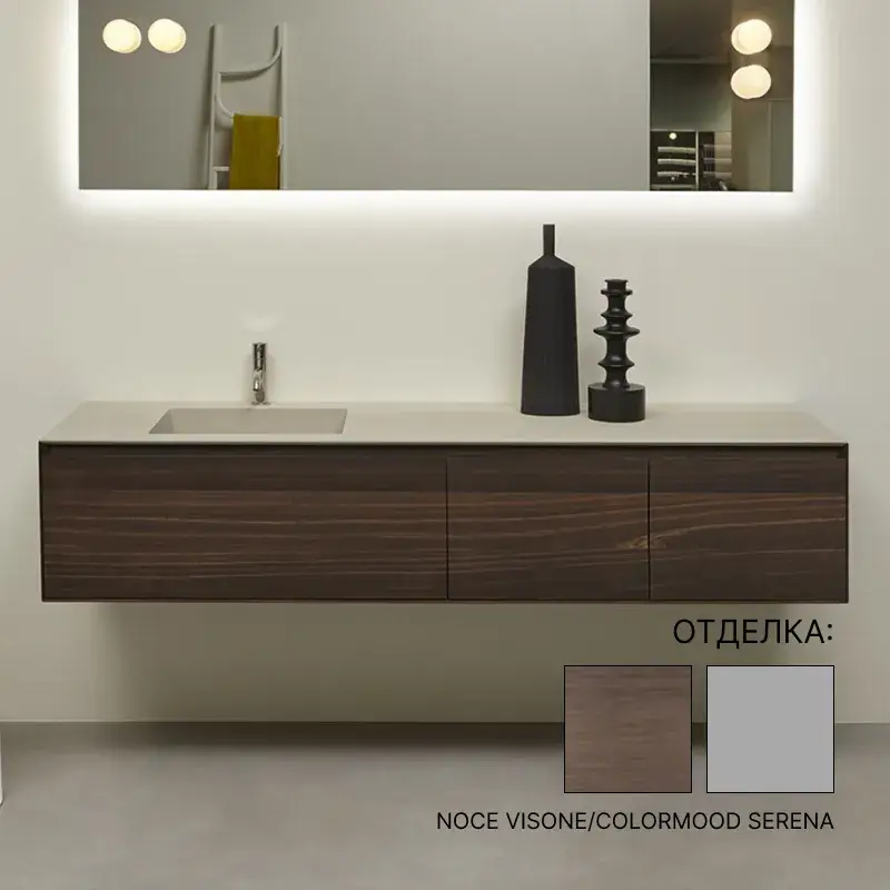 Комплект мебели с раковиной Antonio Lupi Panta Rei PB13180.E.SX+BCS40.180+NIDO472(SX)+PIANETTO4+ELETTRA+SRC4090+staffa40*5 NOCE VISONE/COLORMOOD SERENA