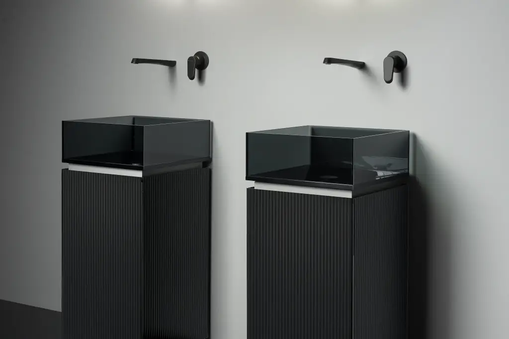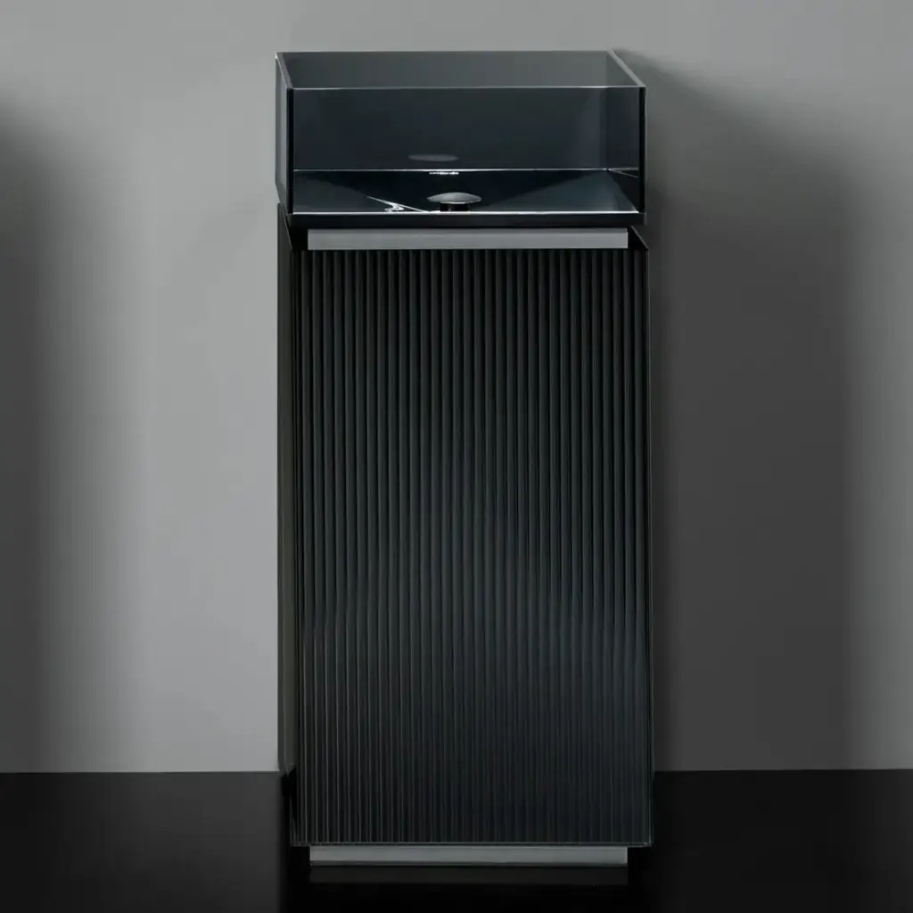 Комплект мебели с раковиной Artelinea PLISSE’ COLLECTION PL41D (PLD41D+BPL40) FLUTES NERO SATINATO-M1, цоколь PELTRO-PE